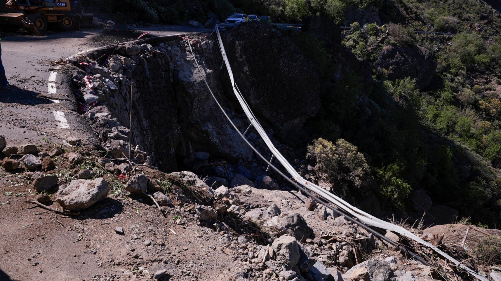 Por otro lado, los desprendimientos masivos durante la borrasca afectaron gravemente a carreteras como la GC-210 (La Aldea-El Parralillo), GC-200 (acceso a Tirma), GC-423 (Cruz del Herrero), GC-421 (La Yedra en San Mateo) y GC-654 (Risco Blanco). Estas vías presentan socavones, hundimientos y pérdida total o parcial de elementos de seguridad vial, lo que obliga a realizar trabajos urgentes para restablecer su funcionalidad y garantizar la seguridad de los usuarios.