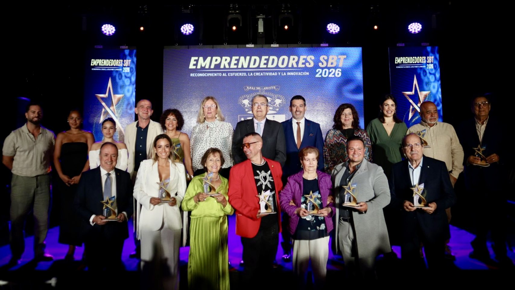 Los premiados en esta primera gala de Emprendedores SBT fueron Sandra Jaurrieta Flores (Talento Emergente), que intervino como portavoz del resto de los galardonados, Carlos V. Alonso Guerra (Innovación Sostenible), los hermanos Moneiba y César García Perera (Vocación de Servicio), Ani Rivero Rodríguez (Trayectoria Comercial), Fidel Rodríguez Rodríguez (Espíritu Pride), Andrés Martínez Ayllón (Pionero del Ocio Turístico), Departamento de Imagen Personal del IES Faro de Maspalomas (Talento Joven e Innovación), Juan Moreno Artiles (Legado Gastronómico), Carmen Rodríguez Quintana (Alma del Comercio) y Princess Hotels & Resorts (Excelencia Turística).